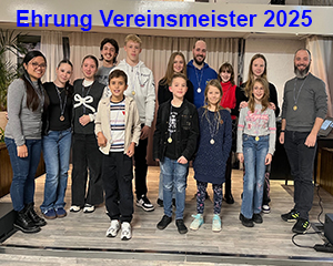 Im Rahmen der Mitgliederversammlung haben wir unsere Vereinsmeister geehrt. Sie erhielten eine Medaille für die verschiedenen Platzierungen und Teilnahme bei Turnieren. Die genaue Platzierung findet ihr auf unserer Homepage.